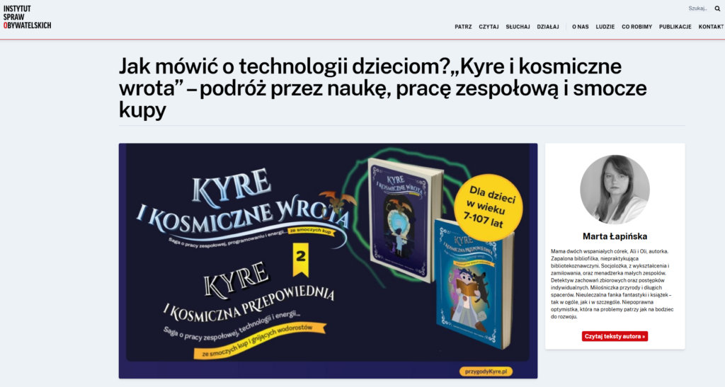 I właśnie o tym ukazał się duży artykuł Instytutu Spraw Obywatelskich – o naszym projekcie i o tym, jak pracujemy z tematem technologii, żeby: